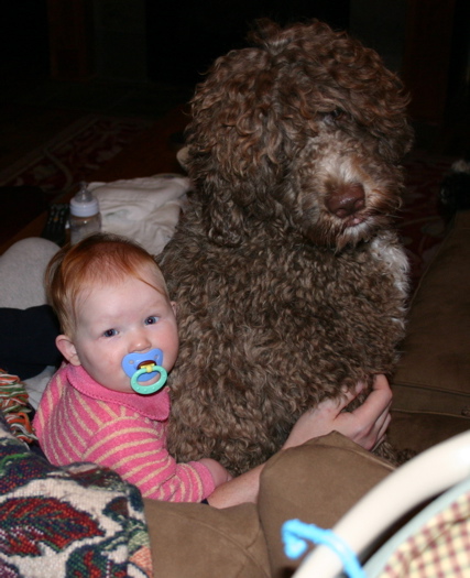 You may have looked at a curly PWD in a retriever haircut and thought it looked like a teddy bear. Or you may have talked with someone who has told you their PWD is great with children. Well, looks are deceiving--this is a working breed with a strong temperament. They can be great with children provided your breeder has socialized them to children and you have put hours, hours and more hours into training both dog and children to be good with each other. Look closely at this picture--see mom's hand right there? See the dog looking at her for direction? This type of behavior doesn't just happen, it needs to be developed. Here are the words of a mother, my friend Melissa, whose daughter Molly and "brown boy" COB are in this picture: "I grew up around dogs so I know how rough kids can be on dogs. That said, I’ve been working with my daughter and both my “boys” to make sure that they all have as good an experience as I remember having as a kid. This means my child has learned how to sit down and watch when the boys are eating and not take their food, and the boys have learned that if they lick her face too often they will get put on a six foot leash and the other end goes to my daughter. You’ve never seen such a dejected look on a dog’s face as when he learns that he is at the mercy of a 2 year old and she intends to “take him for a walk” 13 times around the kitchen. "This also means that I never leave them alone for a second. I know my boys won’t mean to hurt her but there is always that one incident where they are all having a bad day and someone might get hurt. My daughter has been bowled over many times by a dog that just has to get to that squirrel in the yard. And my dogs have had their tails stepped on, bodies leaned on and toys taken away. But on the other side I watch the boys eagerly following my daughter around the yard as she picks up their ball and throws it for them and I’ve seen them all in a heap playing on the bed. It’s a lot of hard work but I think my daughter and boys are going to have some pretty good memories of growing up, just like their Mom does." Remember that most dog bites are inflicted on children. They are smaller, their voices are higher, their movements sudden--all these things create temptation for a dog. Children like to grab noses, throw toys, and shriek--they don't have much sense of "other." Please, if you have children, think very carefully about whether or not this is the time to add an active, headstrong, primitive dog to your family. See PWD Agression: Can It Happen to you? |